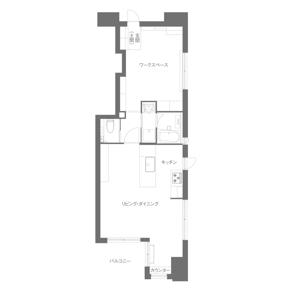 お二人のワークスペースは、開放的な空間で作業ができるよう、洋室の壁を取り払い廊下・玄関と一続きにしました。以前廊下や洋室にあった収納は扉を取り払いオープンに。お二人の靴やスーツ、オフィス用具などをスムーズに取り出せる、使い勝手のよい収納スタイルが実現しました。