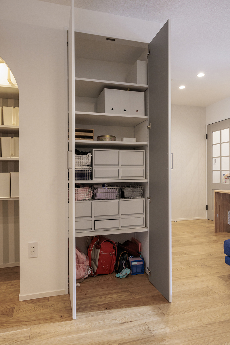 - ランドセルも入りました!元々は廊下に長押をつけてバッグ、ヘルメットなどかけていたけどそれが全部入るようになりました。