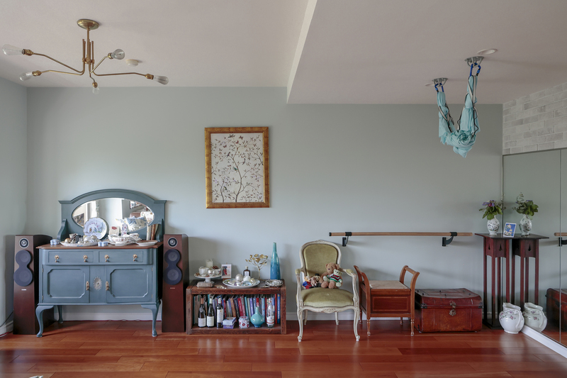 - 【バレエやエアリアルヨガのための体を動かすスペース】【テレビを見たりリラックスするスペース】【イギリスで買ってきた壁や絵を飾るスペース】この3つにこだわりました。