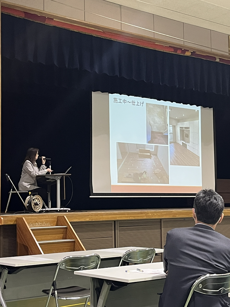 当日は、弊社スタッフが担当したリフォーム事例をもとに、工夫したポイントや取り組みを紹介。