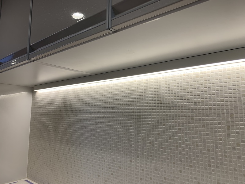 間接照明によって、よりタイル柄の凹凸感がきれいに見える仕様になっています。