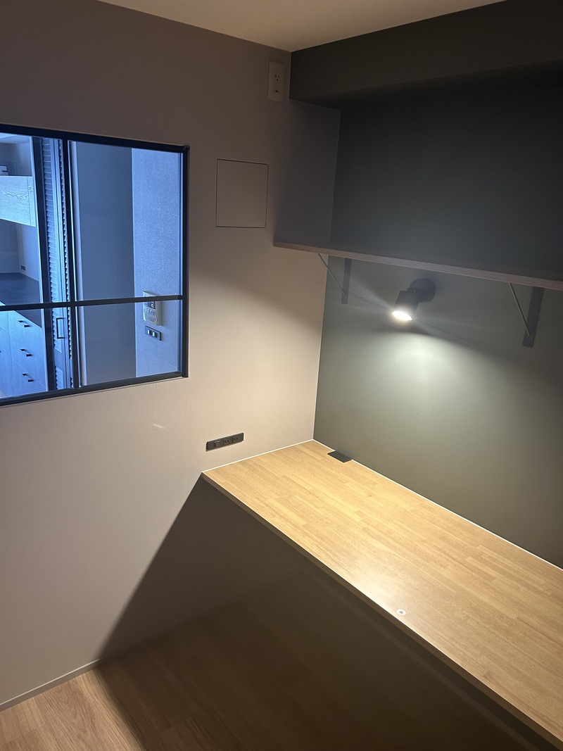 キッチンの室内窓の横はお子様のお勉強などが出来るワークスペース。