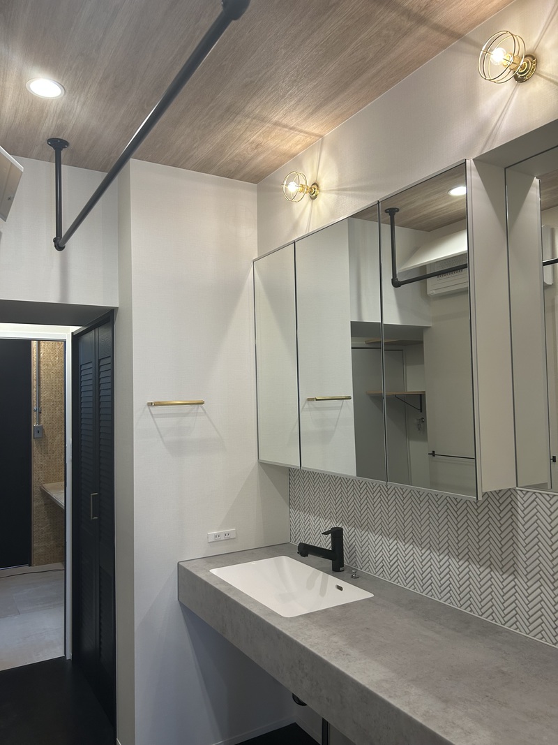 カウンターは、アイカ工業さんの「スマートサニタリーu」というシリーズで、モルタルのような質感のある色味をチョイスされています。