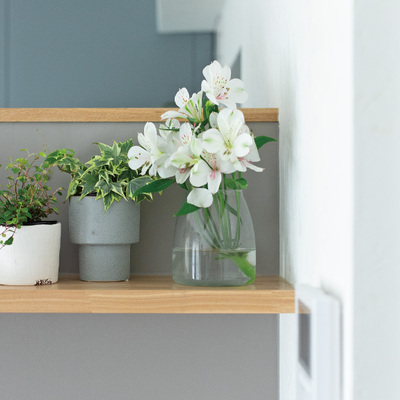 開放感のあるキッチンとダイニングテーブルが一体化しているため、新たにスペースを確保せずにすむのが素敵ですね!リビングから玄関土間までキャットウォークが繋がっていて3匹の猫たちが喜びそうです。そして、地味にどこに置くべきかと困っていた猫用トイレの場所を「ここ」と決めて作ってくれたのも嬉しい提案でした。ワークスペースの間取りも斜めにしたことによって、玄関まわりが広くなりとても良かったです。