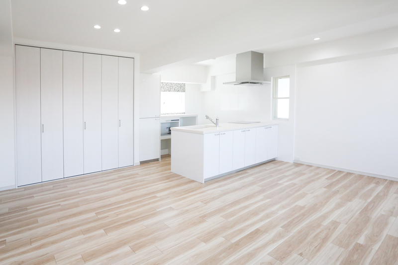 白いカラーで統一された広々1LDK。家具選びも楽しみです。