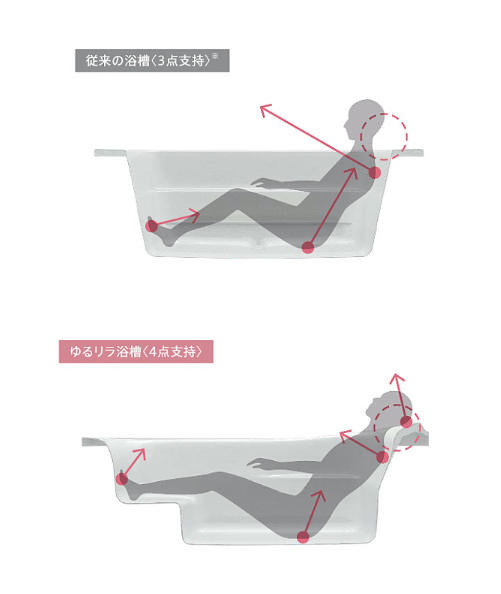 4点支持設計でゆったり入浴『ゆるリラ浴槽』